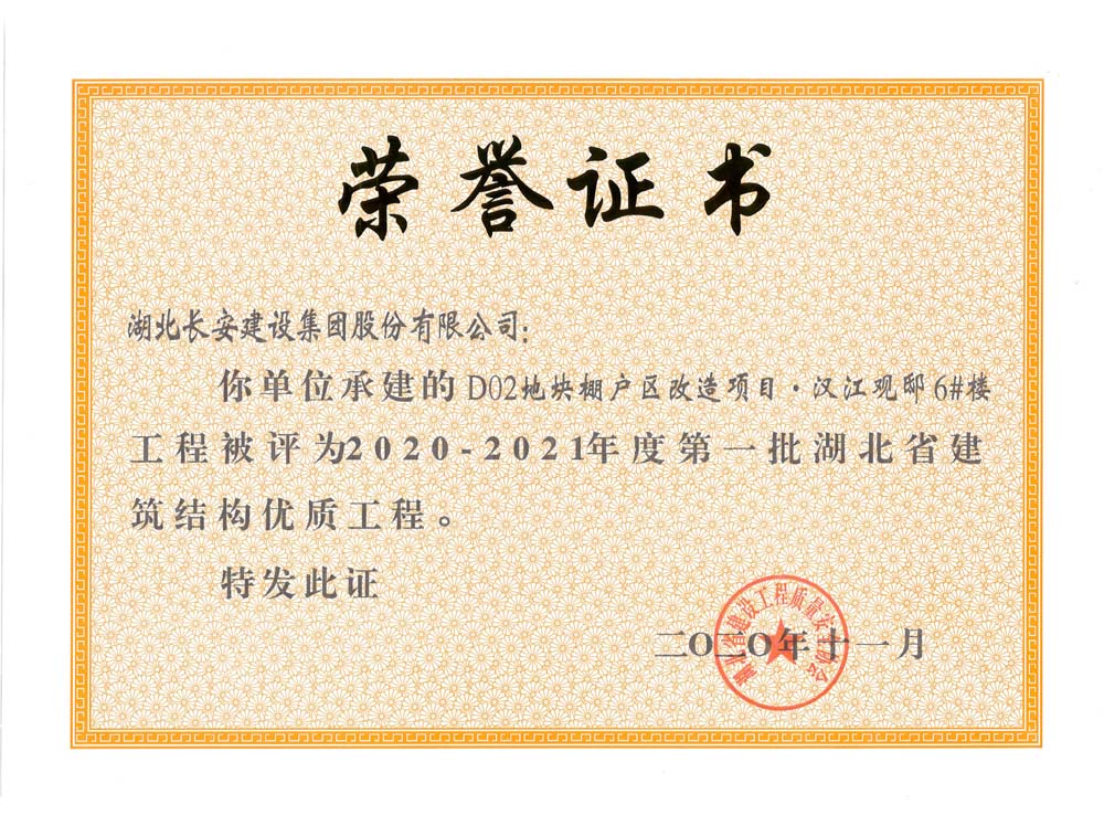 D02地塊棚戶區(qū)改造項目丶漢江觀邸6#樓2020-2021年度第一批湖北省建筑結(jié)構(gòu)優(yōu)質(zhì)工程