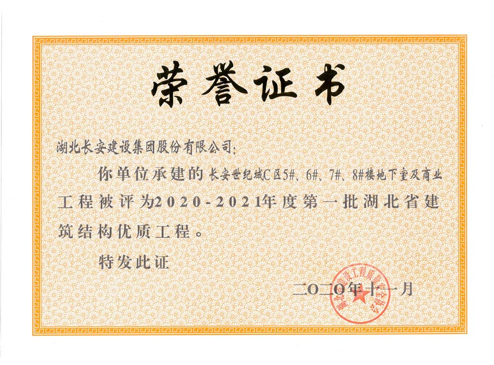 長安世紀城C區(qū)5#、6#、7#、8#樓地下室及商業(yè)2020-2021年度第一批湖北省建筑結(jié)構(gòu)優(yōu)質(zhì)工程