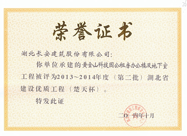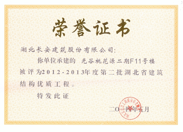 2014年省建筑結(jié)構(gòu)優(yōu)質(zhì)工程榮譽證書
