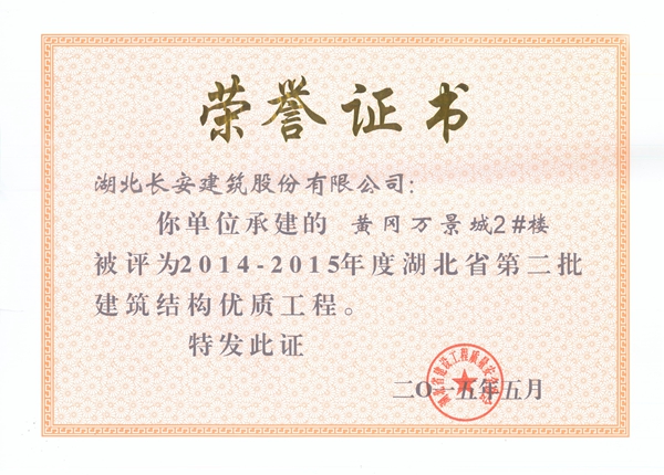 2015年省建筑結(jié)構(gòu)優(yōu)質(zhì)工程榮譽證書