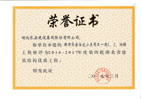2018年省建筑結(jié)構(gòu)優(yōu)質(zhì)工程榮譽證書