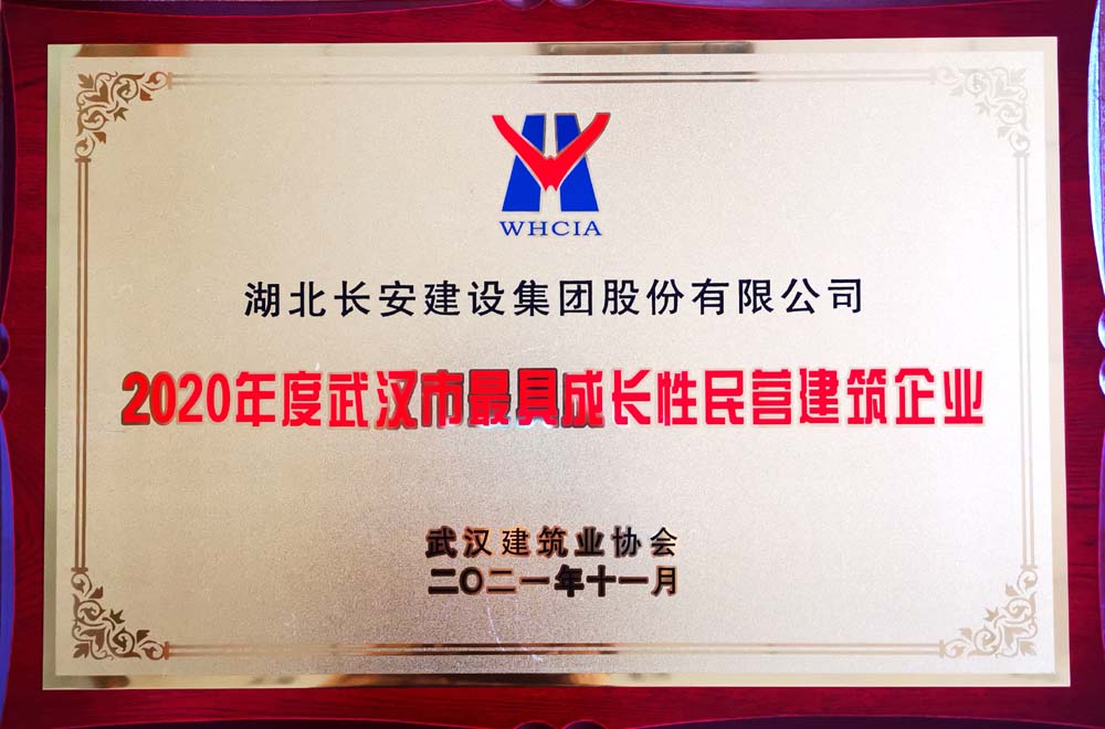湖北長(zhǎng)安建設(shè)集團(tuán)榮獲2020年度武漢市最具成長(zhǎng)性民營(yíng)建筑企業(yè)榮譽(yù)稱(chēng)號(hào)