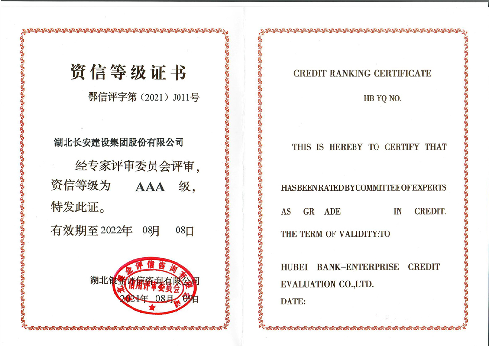 集團(tuán)被中國施工企業(yè)管理協(xié)會評為“AAA級信用企業(yè)”