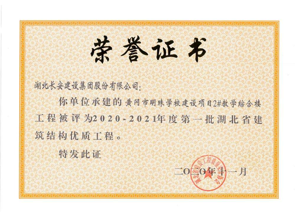 黃岡市明珠學(xué)校建設(shè)項(xiàng)目2#教學(xué)綜合樓2020-2021年度第一批湖北省建筑結(jié)構(gòu)優(yōu)質(zhì)工程