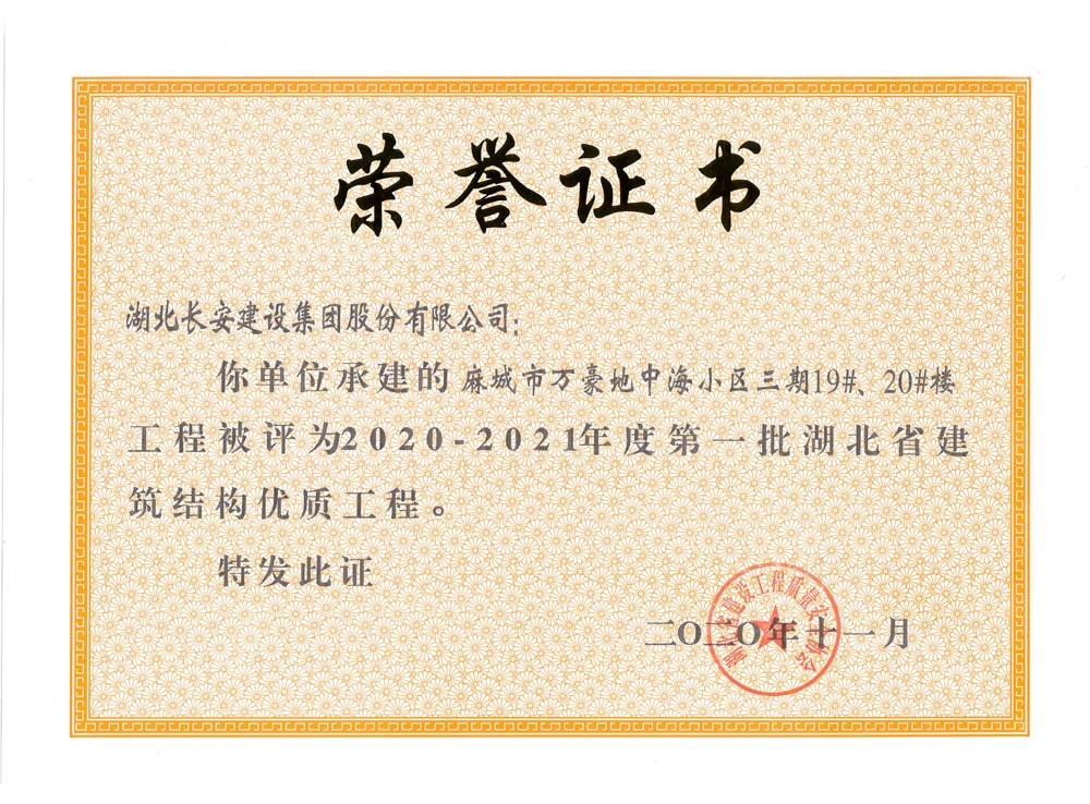 麻城市萬(wàn)豪地中海小區(qū)三期19#、20#樓2020-2021年度第一批湖北省建筑結(jié)構(gòu)優(yōu)質(zhì)工程