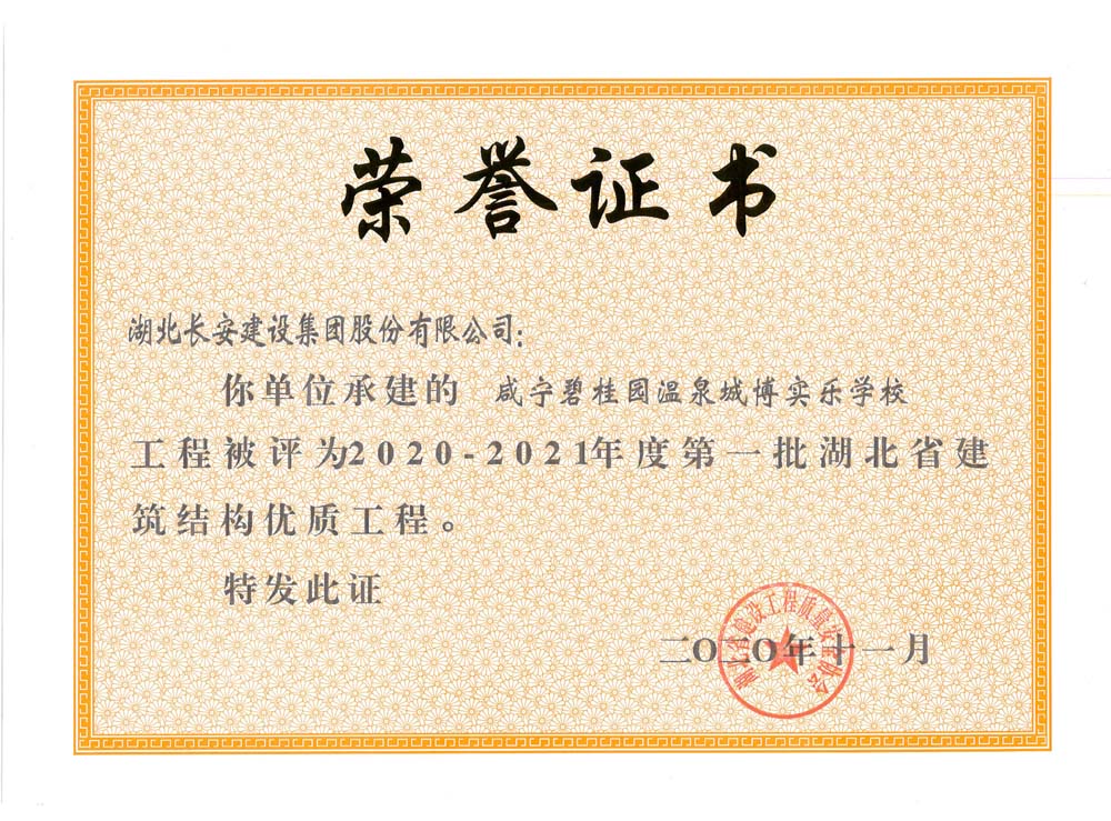 咸寧碧桂園溫泉城博實樂學(xué)校2020-2021年度第一批湖北省建筑結(jié)構(gòu)優(yōu)質(zhì)工程