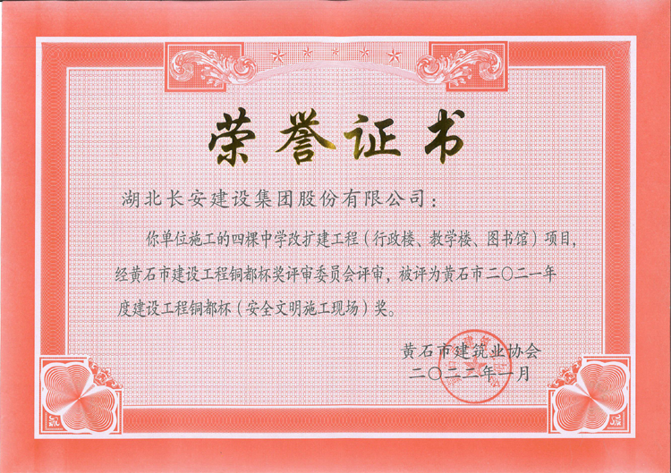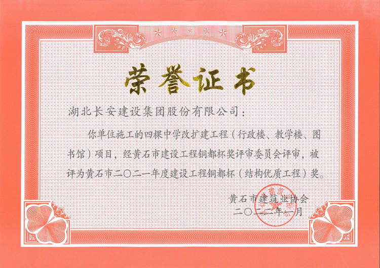 黃石四棵中學(xué)改擴(kuò)建工程項(xiàng)目榮獲結(jié)構(gòu)優(yōu)質(zhì)工程和安全文明施工現(xiàn)場(chǎng)