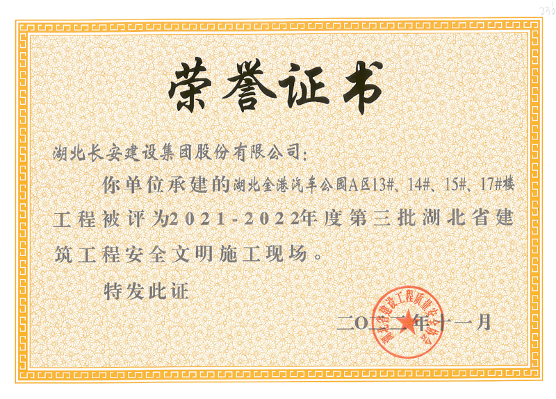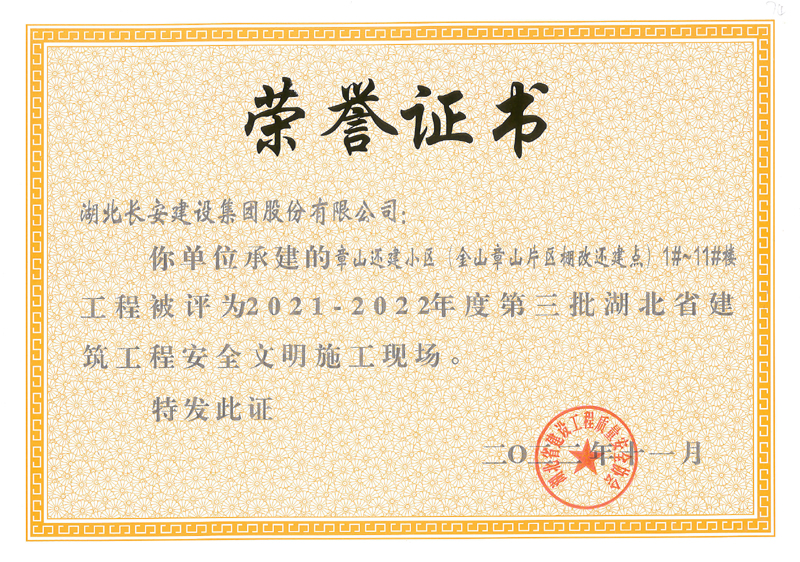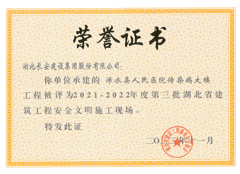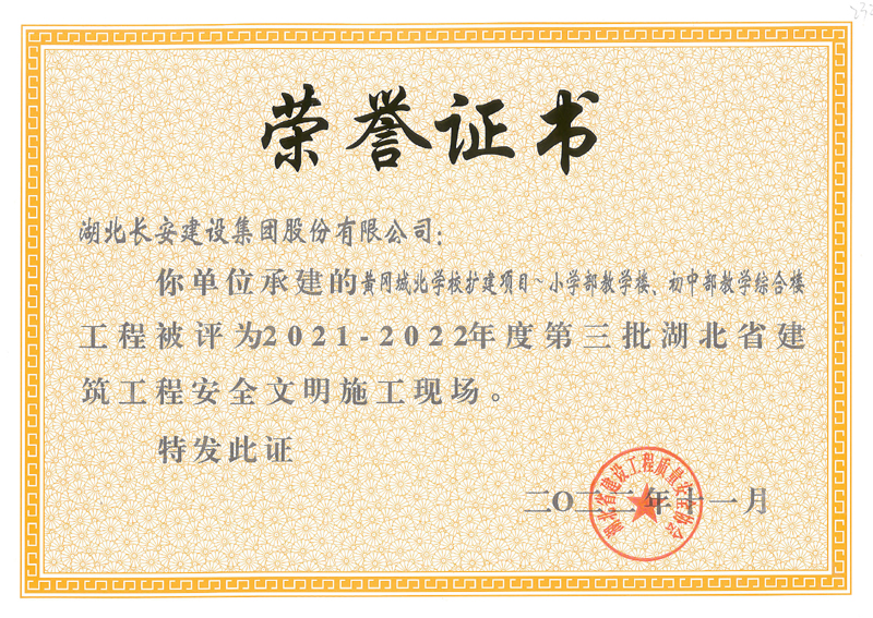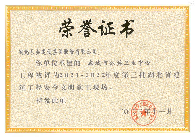 麻城市公共衛(wèi)生中心等8個(gè)工程項(xiàng)目榮獲2021-2022年度第三批湖北省建筑工程安全文明施工現(xiàn)場(chǎng)