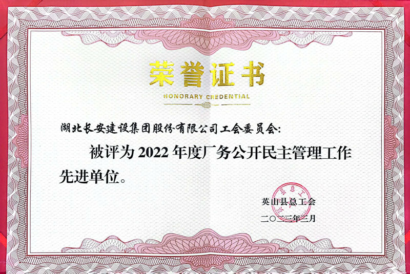 集團工會獲評“2022年度廠務公開民主管理工作先進單位”