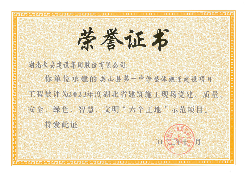 英山縣一中搬遷工程、黃州區(qū)106國道沿線工程獲評(píng)“2023年度湖北建筑施工現(xiàn)場(chǎng)六個(gè)工地”