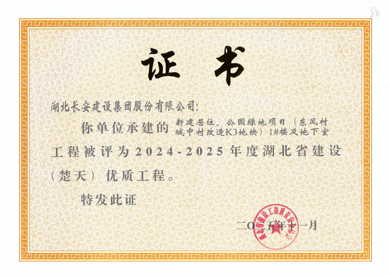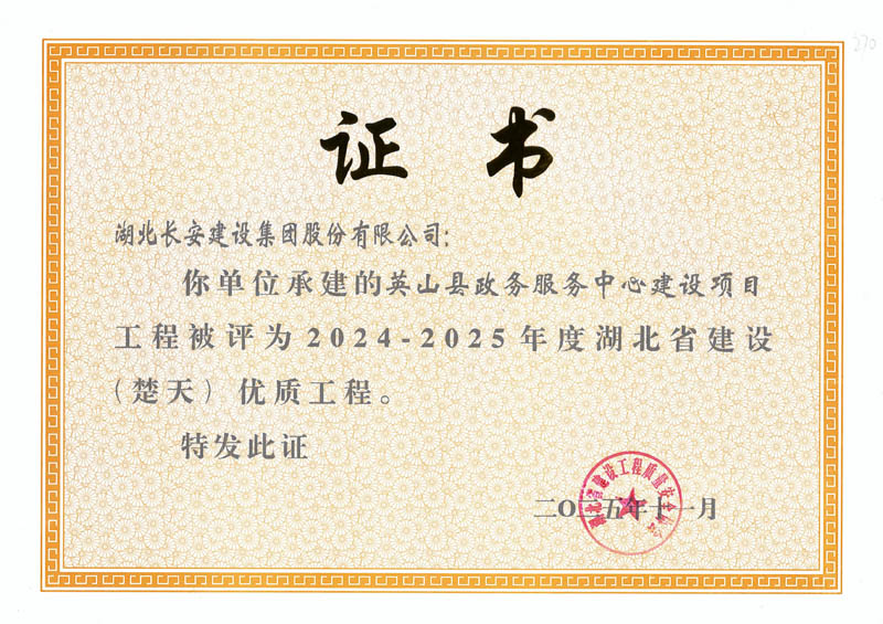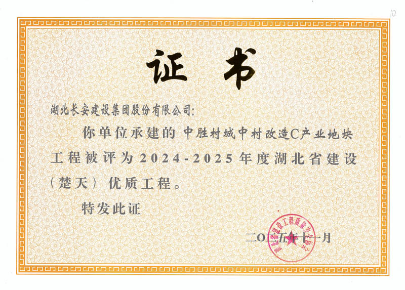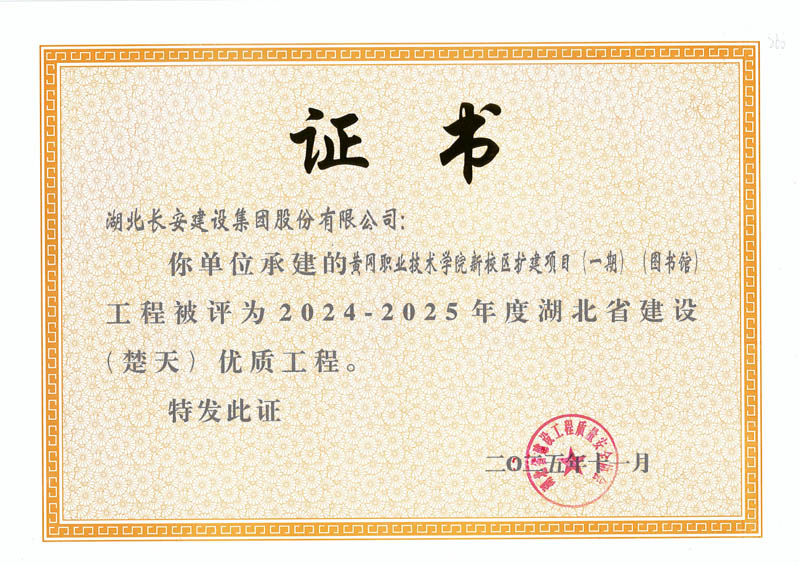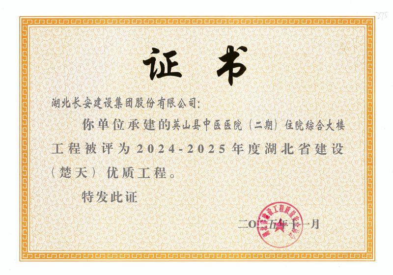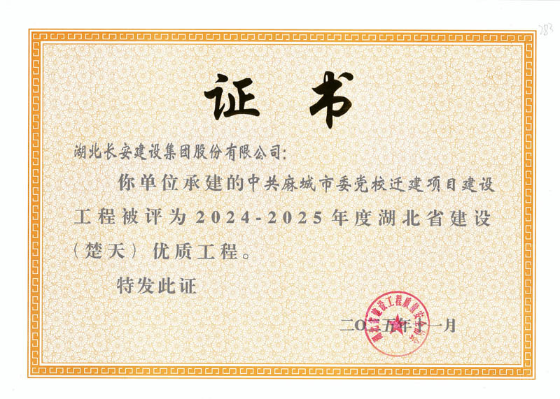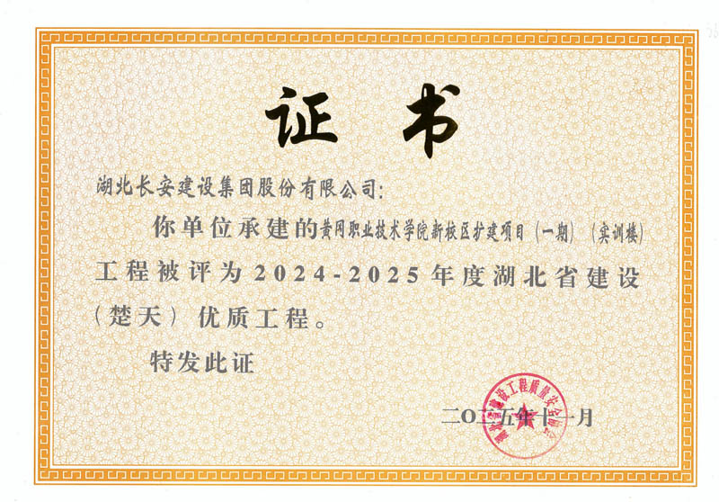 9項工程獲評2024-2025年度湖北省(楚天)優(yōu)質(zhì)工程