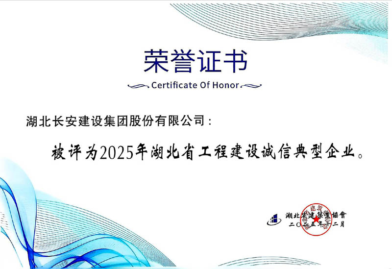 集團(tuán)公司被評(píng)為2025年湖北省工程建設(shè)誠(chéng)信典型企業(yè)