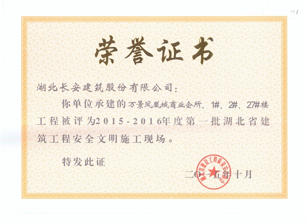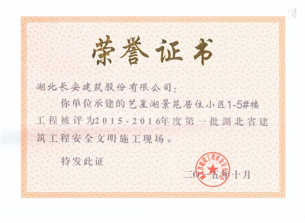 藝星湖景苑小區(qū)1-5號(hào)樓安全文明現(xiàn)場(chǎng)證書