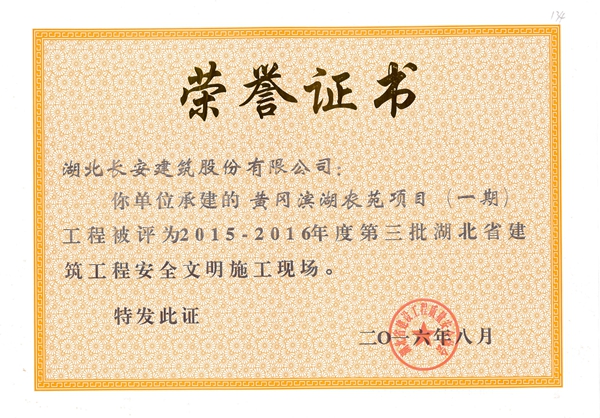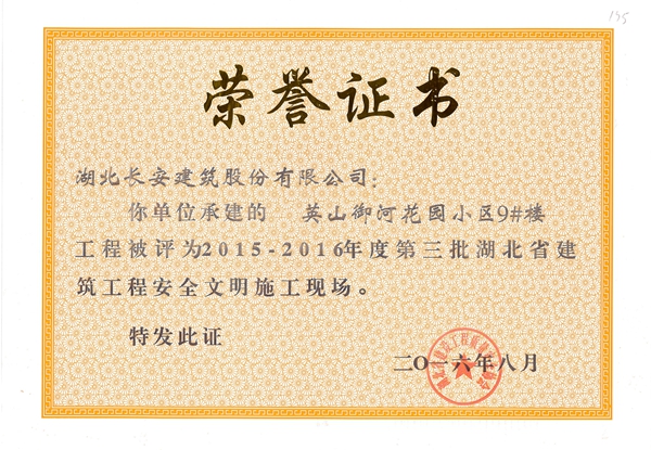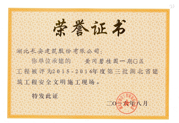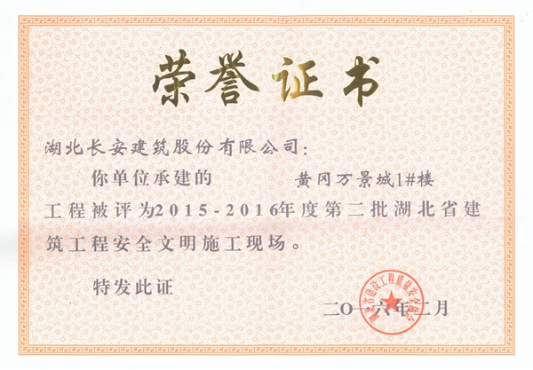 黃岡萬(wàn)景城1#樓被評(píng)為2015-2016年度第二批省安全文明施工現(xiàn)場(chǎng)