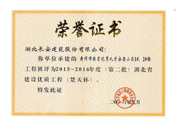 黃岡市教育優(yōu)秀人才安居小區(qū)1#、2#樓省優(yōu)質(zhì)(楚天杯)2016