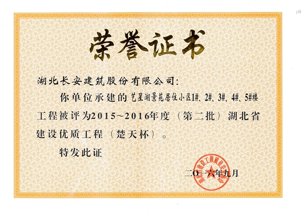藝星湖景苑居住小區(qū)1-5#樓省優(yōu)質(zhì)(楚天杯)2016