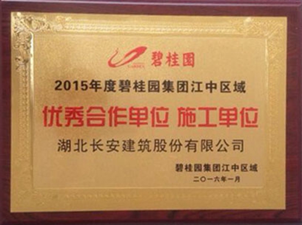 2015年度碧桂園集團(tuán)江中區(qū)域優(yōu)秀合作單位、施工單位獎(jiǎng)牌