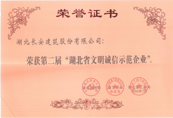 湖北省文明誠信示范企業(yè)證書2016