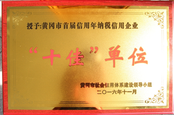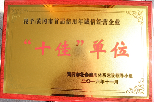 授予黃岡市首屆信用年誠信經(jīng)營企業(yè)“十佳”單位(2016)