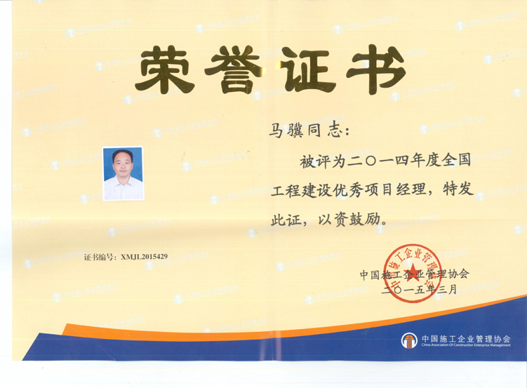 2014年度全國(guó)工程建設(shè)優(yōu)秀項(xiàng)目經(jīng)理(馬驥)