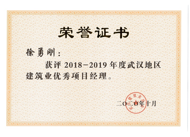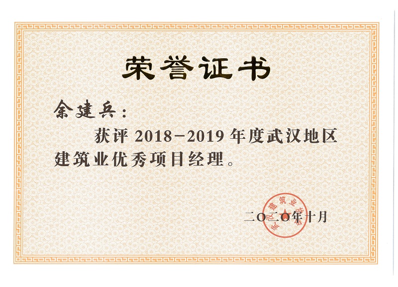段錦添、胡衛(wèi)星、張明、徐勇剛、余建兵獲評2018-2019年度武漢地區(qū)建筑業(yè)優(yōu)秀項(xiàng)目經(jīng)理