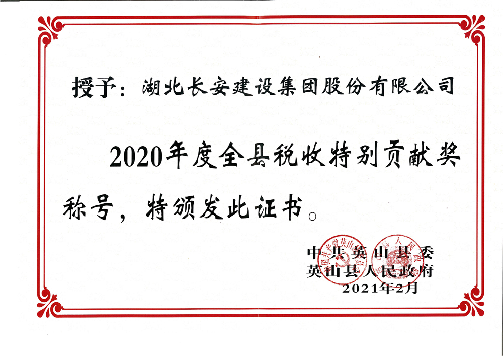2020年度英山縣稅收特別貢獻(xiàn)獎(jiǎng)