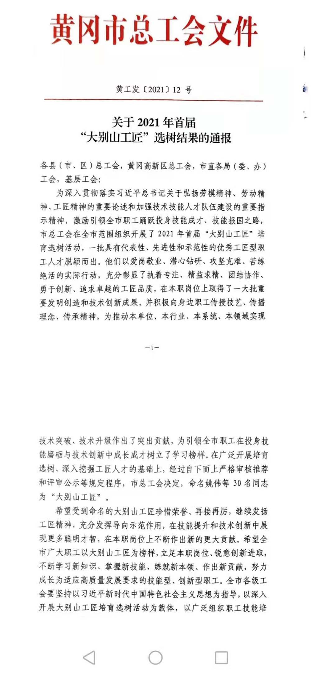 黃岡市總工會(huì)授予袁浩“大別山工匠”榮譽(yù)稱號(hào)