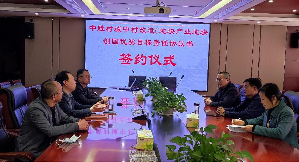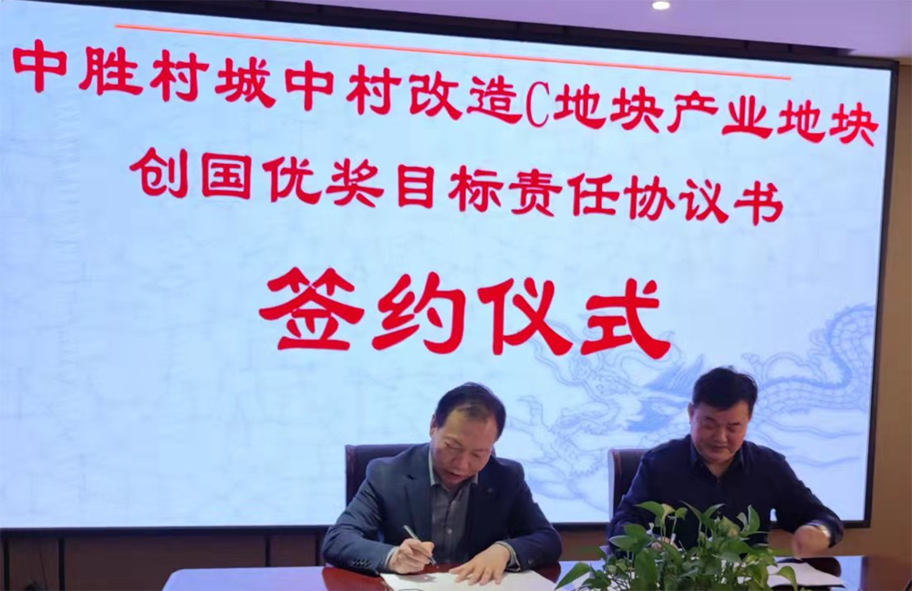 3月8日,中勝村城中村改造C地塊產(chǎn)業(yè)地塊創(chuàng)國優(yōu)獎目標責任協(xié)議書簽約儀式在集團武漢分公司舉行。以集團總經(jīng)理葉發(fā)保任組長的項目創(chuàng)優(yōu)班子主要負責人參加簽約儀式,共同見證這個莊嚴而神圣的時刻。總經(jīng)理葉發(fā)保(左)代表集團公司與該項目經(jīng)營承包負責人、項目經(jīng)理段照明(右)在《目標責任協(xié)議書》上簽字。