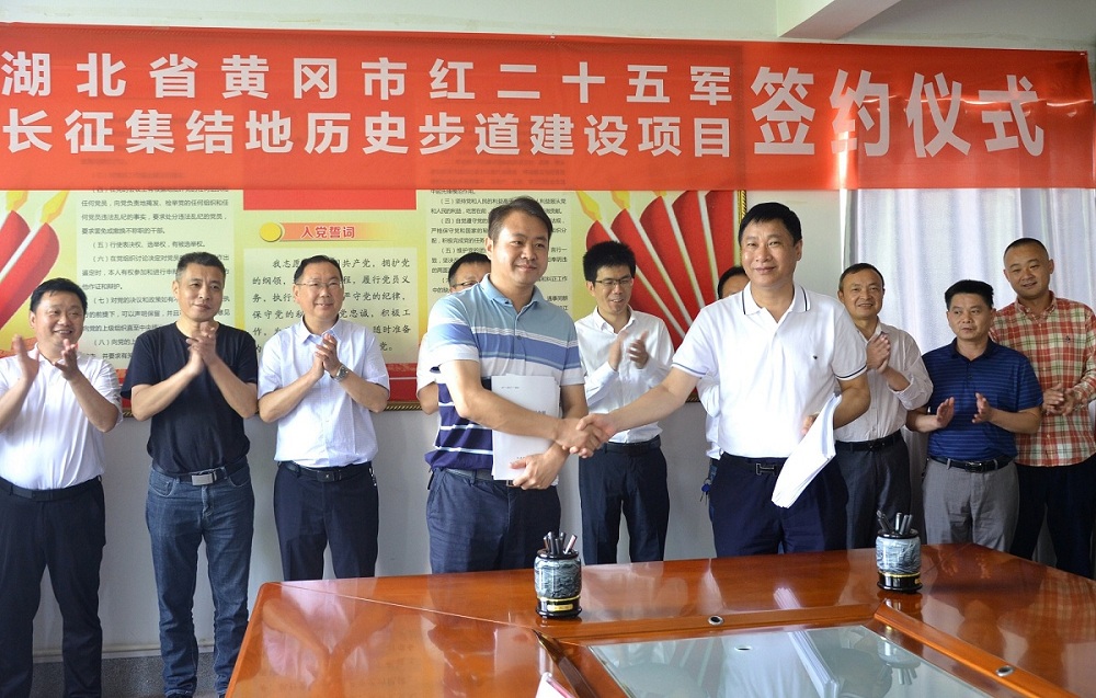 簽約儀式上,祝曙洺首先對集團中標(biāo)表示祝賀,并簡要介紹了湖北省黃岡市紅二十五軍長征集結(jié)地歷史步道建設(shè)項目既是重大政治任務(wù),又是重大歷史機遇,他要求集團公司要嚴(yán)謹(jǐn)規(guī)范施工,在保證施工質(zhì)量的前提下,確保施工安全,確保工程順利完工,把這一造福當(dāng)代、利在千秋的民心工程高標(biāo)準(zhǔn)建成建好。