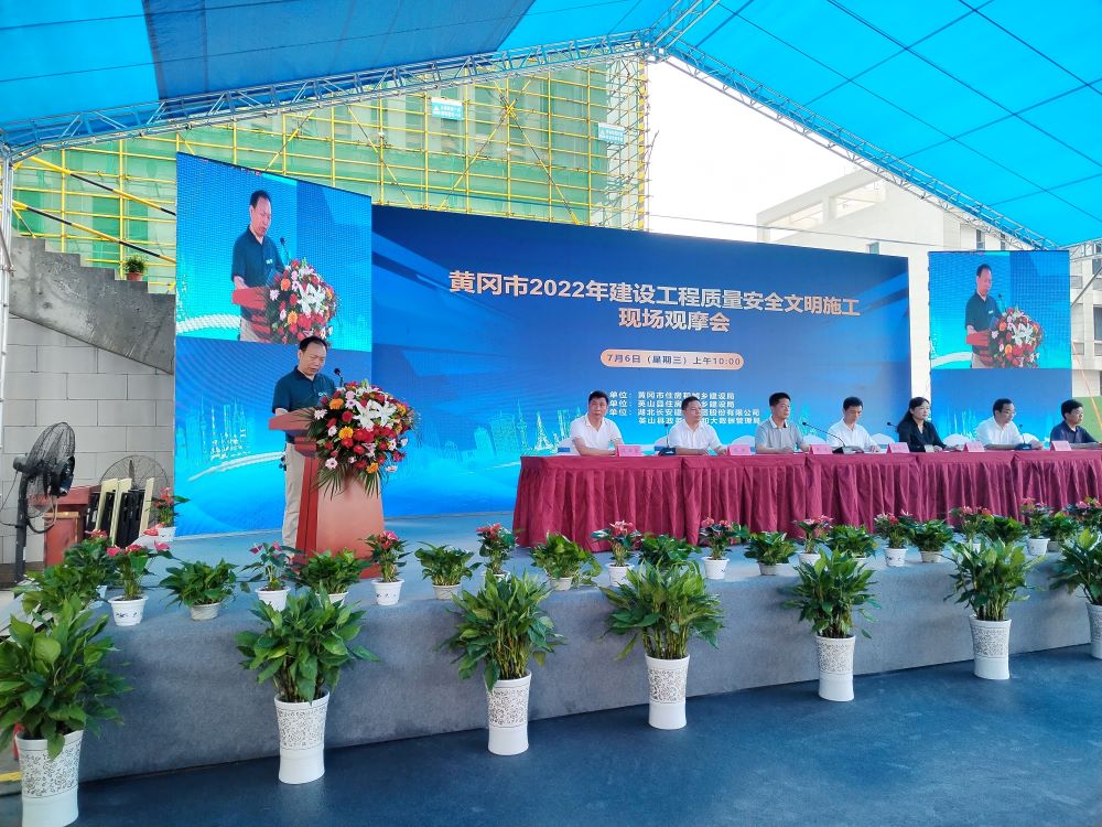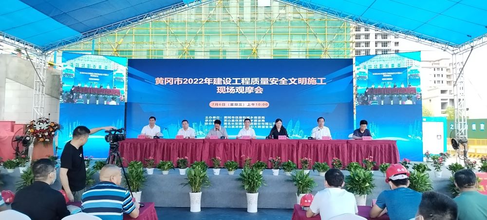 酷暑盛夏,火紅歲月。7月6日,黃岡市2022年建設(shè)工程質(zhì)量安全文明施工現(xiàn)場(chǎng)觀摩活動(dòng)在湖北長(zhǎng)安建設(shè)集團(tuán)承建的英山縣政務(wù)服務(wù)中心建設(shè)項(xiàng)目現(xiàn)場(chǎng)召開(kāi)。黃岡市住建局黨組成員、副局長(zhǎng)徐向華,英山縣縣委副書記、政法委書記張春梅,英山縣住建局黨組書記、局長(zhǎng)段衛(wèi)國(guó),英山縣政務(wù)服務(wù)和大數(shù)據(jù)管理局黨組書記、局長(zhǎng)段斌,英山縣應(yīng)急管理局黨委書記、局長(zhǎng)楊晨曦,湖北省人大代表、黃岡市建筑業(yè)協(xié)會(huì)會(huì)長(zhǎng)、英山縣工商聯(lián)主席、湖北長(zhǎng)安建設(shè)集團(tuán)董事長(zhǎng)段衛(wèi)昌出席此次活動(dòng)。英山縣人民政府黨組成員、副縣長(zhǎng)陳瓊主持。