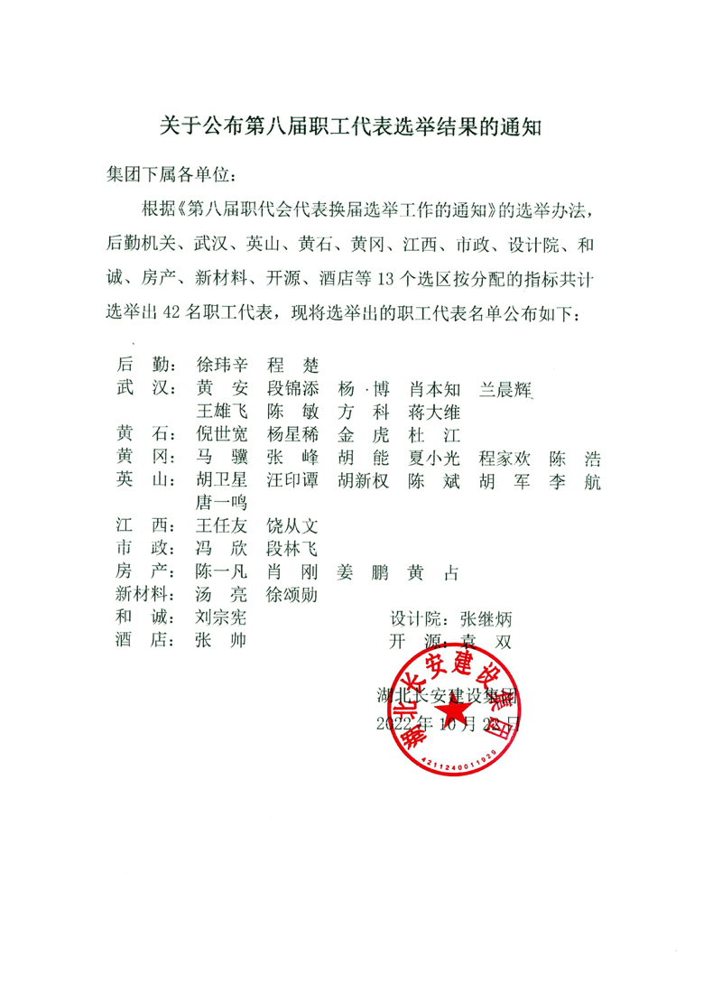 集團(tuán)第八屆職工代表選舉結(jié)果公告