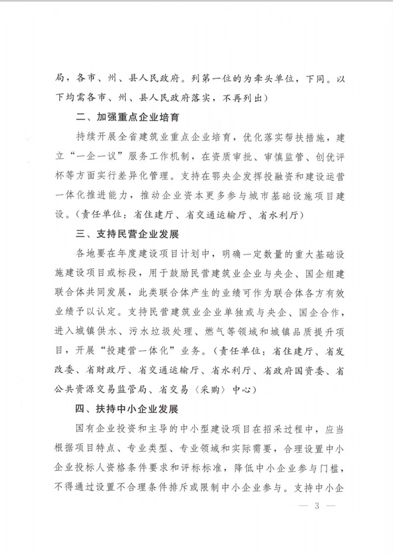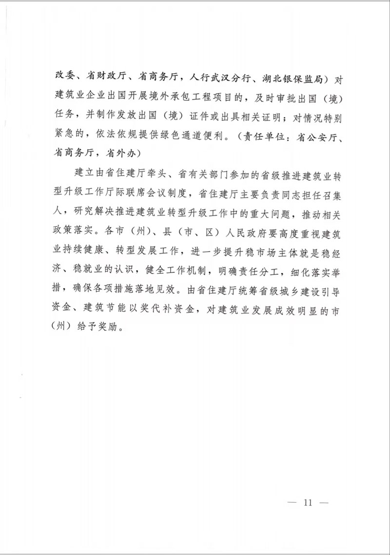 湖北省人民政府辦公廳關(guān)于印發(fā)支持建筑業(yè)企業(yè)穩(wěn)發(fā)展促轉(zhuǎn)型若干措施的通知