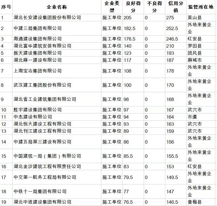 近日,黃岡市2023年度建筑市場主體第一期信用評價結(jié)果公布,集團公司良好得分205分、不良得分0分、信用分值275分,榮膺黃岡市2023年度建筑市場主體第一期信用評價第一名。