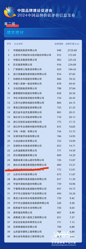 5月11日,中國品牌建設(shè)促進(jìn)會(huì)發(fā)布了2024中國品牌價(jià)值評(píng)價(jià)信息,湖北長安建設(shè)集團(tuán)股份有限公司(簡(jiǎn)稱:湖北長安建設(shè)集團(tuán))在全國“第二組 建筑建材”類40家企業(yè)中位列第25名,品牌價(jià)值為13.21億元,比上年度增加1.04億元,連續(xù)3年位居黃岡市企業(yè)(產(chǎn)品)品牌第一。