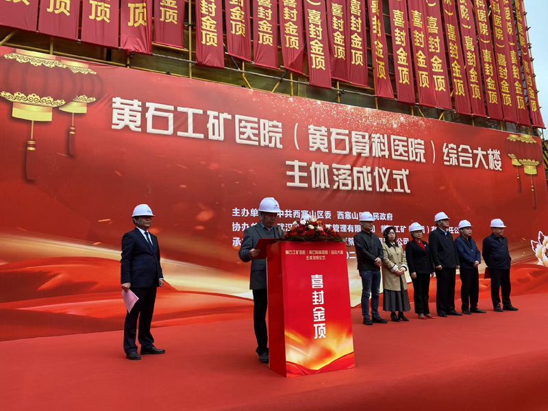 11月20日,黃石工礦醫(yī)院(黃石骨科醫(yī)院)綜合大樓主體落成儀式舉行,集團(tuán)公司總經(jīng)理葉發(fā)保到場祝賀并作重要講話。