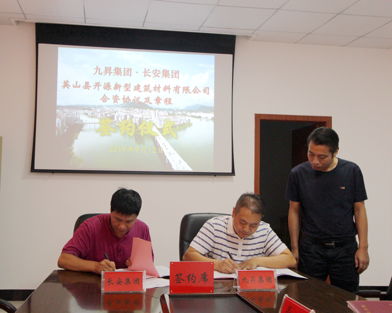2019年9月12日上午,湖北長安建設集團與九昇集團(英山縣城投公司)合作成立英山縣開源新型建筑材料有限公司成功簽約。