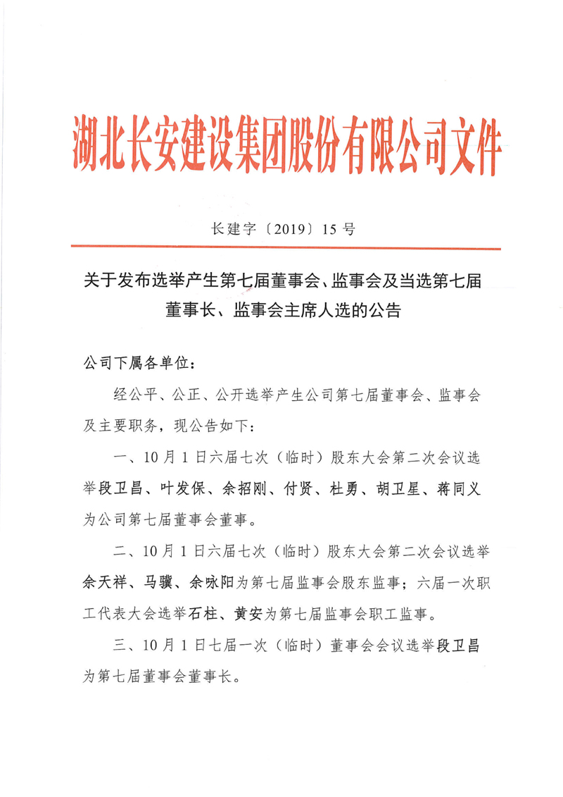 集團(tuán)公司第七屆董事會、監(jiān)事會及董事長、監(jiān)事會主席人選的公告