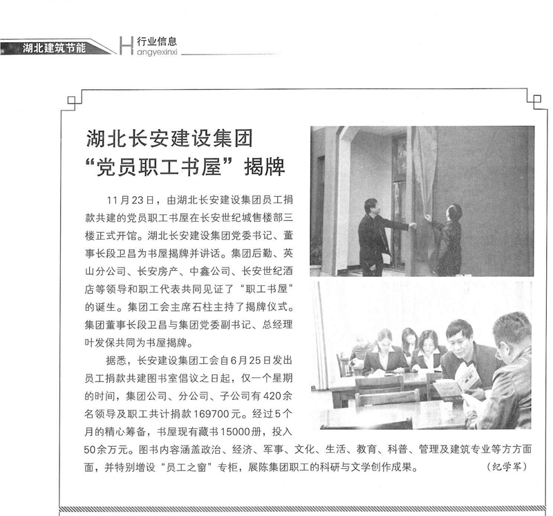 湖北長安建設集團“黨員職工書屋”揭牌