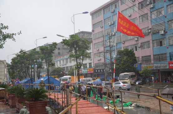 浴雨搶建“防洪橋”
