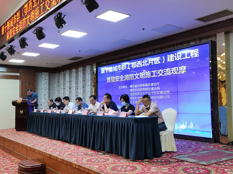 8月26日,由省住建廳、襄陽市住建局、襄陽高新區(qū)建設局主辦,湖北長安建設集團股份有限公司(簡稱長安建設集團)、北龍建設集團有限公司承辦的襄陽十堰隨州城市群(鄂西北片區(qū))建筑工程質量安全消防文明施工經驗交流觀摩會在襄陽隆重召開。省住建廳質安處處長王志勇出席會議并講話,襄陽市住建局副局長柳建庭主持。省住建廳和襄陽、孝感、十堰、隨州、神農架林區(qū)及襄陽各縣(市,區(qū))住建部門及鄂西北片區(qū)建筑企業(yè)代表共計320余人參會。此次設主會場1個、分會場3個。通過云平臺進行線上、線下密切互動,同步直播。