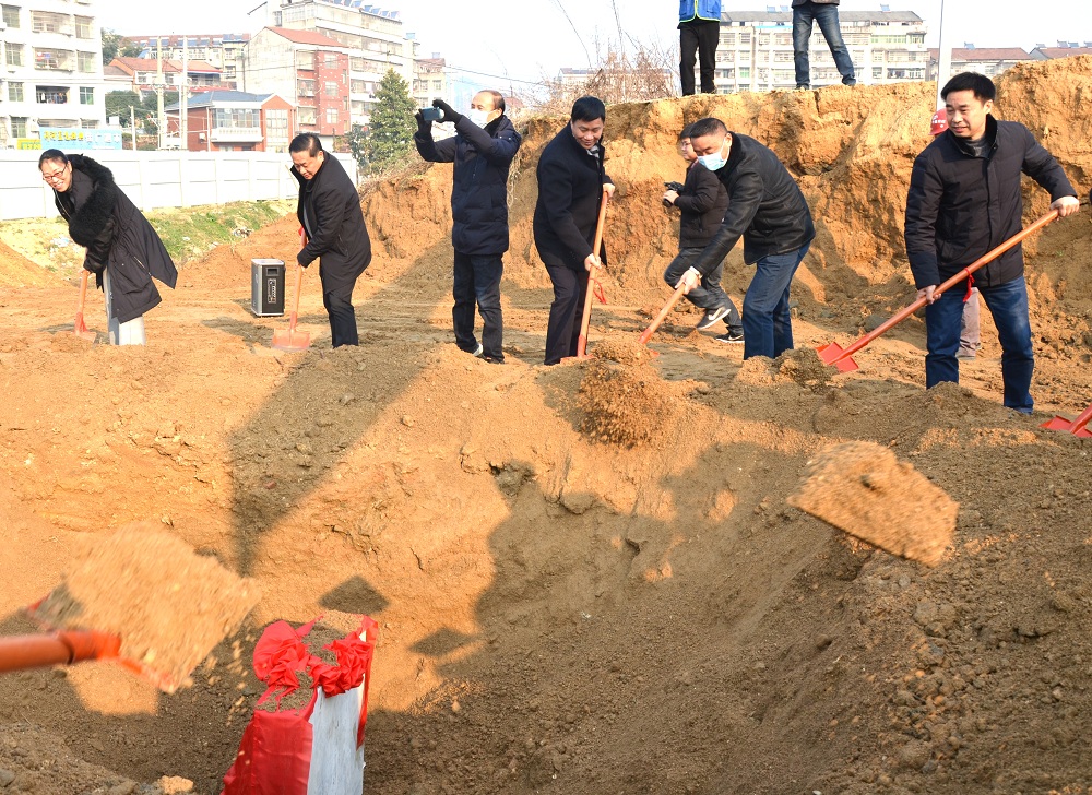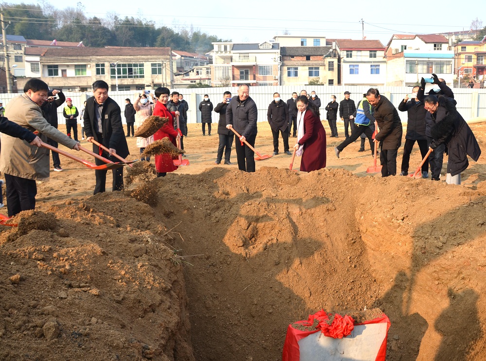 英山縣一中校長(zhǎng)劉振武主持奠基儀式,縣委常委、宣傳部長(zhǎng)盧峰宣布項(xiàng)目開(kāi)工。